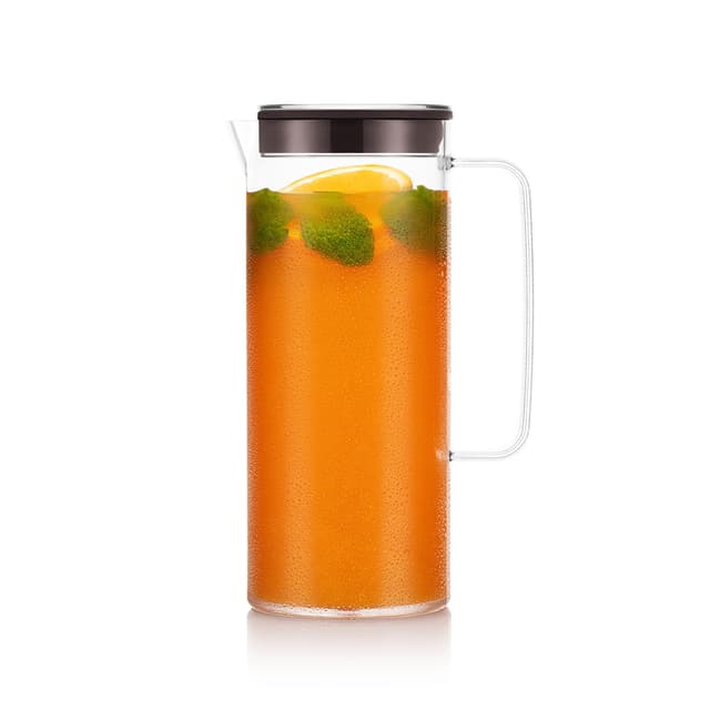 Forfriskende kolde drikkevarer er det perfekte match til solrige eftermiddage, tilbragt sammen med dem du holder af på græsplænen, gårdhaven eller balkonen. Takket være sin generøse størrelse kan vores fremragende kande hjælpe med at holde drikkevarerne - og samtalen - flydende. Denne smarte, men alligevel praktiske kande, er lavet af krystalklar plastik, som er ideel til at vise drikkevarens smukke farver frem, te, saftevand, friskpresset juice, punch og mange andre populære drikkevarer . (At se dem afspejle solens stråler gennem kanden er forrygende.) Den smart designede tud og det behagelig håndtag gør det nemt at hælde drinks, mens det praktiske låg beskytter mod spild. Denne attraktive kande er vidunderligt alsidig og er god til når man skal servere en masse dejlige drikkevarer for en stor forsamling. Produktfunktioner og fordele • Stilfuld, høj, cylinderformet, gennemsigtig kande med robust håndtag og sikkert, sort låg • Lavet af holdbar plast, silikone og gummi i høj kvalitet • Stor kapacitet på 1,2 l - perfekt til sociale sammenkomster • Ideel til servering af afkølede drikkevarer, eller drikke med is. Den kan dog også bruges sammen med varme drikke • Velegnet til udendørs og indendørs brug • Den passer sammen med andre produkter