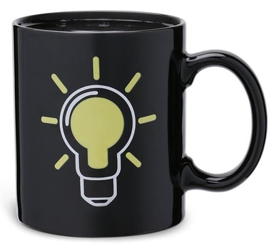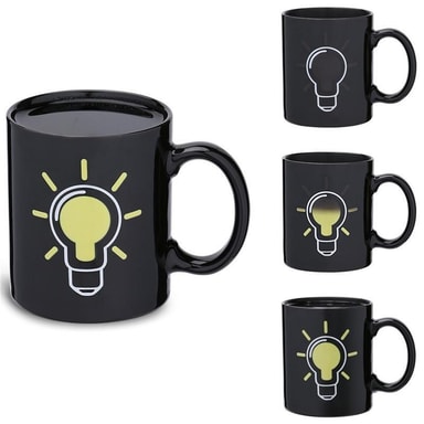Varmeskiftende krus.Når du holder noget varmt i kruset, ændrer kruset farve på sin glødelampe.Mønster: GlødelampeMateriale: KeramikFarve: SortStørrelse: 12.5x9.5x8cmTåler ikke opvaskemaskine eller mikrobølgeovn da det kan ødelægge varmeskiftningen. TLæs mere om produktet