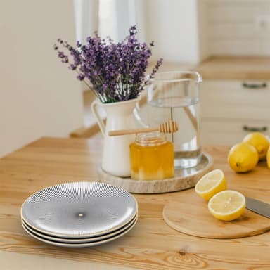 Tallerkenerne er runde og ret enkle for at udnytte overfladen optimalt. Samtidig er de også meget stilfulde og passer godt til enhver borddekoration og ethvert interiør.