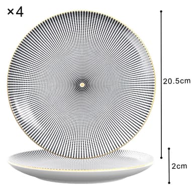 Porcelænsmaterialet er modstandsdygtigt over for varme og kulde. Leveringsomfang: 4 tallerkener