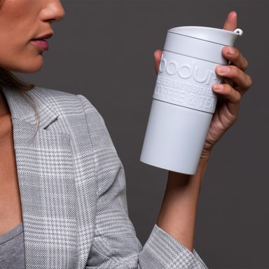 Nye farver eksklusivt tilgængelige online! Det meget populære Bodum Rejsekrus er ideelt til den daglige transport, ferier, træningscenteret eller blot til en gåtur med hunden, da det er designet til at tage med hvor som helst. Det sikrer, at din kaffe, te eller andre favoritdrikke altid er inden for rækkevidde, selv når du er langt væk hjemmefra. Rejsekrusets stilfulde, strømlinede design fuldendes med er vores innovative og isolerende dobbeltvæg-system. Det holder varme og kolde drikkevarers temperatur i timevis, så du kan nyde hver en tår. Du kan være sikker på, at krusets ydre holder sig koldt, selv når indholdet er rygende varmt. Rejsekruset er slidstærkt og robust, og har en flot overflade af rustfrit stål, sikkert låg med drikkeåbning og matchende, skridsikkert omslag, som gør det behageligt at bære. Husk at holde kruset oprejst, når du har fyldt det med din udvalgte drik. Kombinationen af stil, praktik og at det er nemt at have med sig, gør rejsekruset ideelt til enhver rejse. Derudover kan du nyde hver drik mere, velvidende at du har udskiftet engangskrus med et langvarigt, mere miljøvenligt alternativ. Dit rejsekrus fås i en lang række farver, så det passer til netop dig. Fire smarte nye pastelfarver - Blue Moon, Strawberry, Verbena og Shadow - er eksklusivt tilgængelige, når du handler online. Produktegenskaber og fordele • Stilfuldt, praktisk rejsekrus til varme og kolde drikke • Fremstillet af højkvalitativt rustfrit stål, plastik, gummi og silikone • Design med dobbeltvæg holder drikkevarer ved deres ideelle temperatur i længere tid • Generøs kapacitet på 0,35 L/12 oz • Nemt at rengøre • Mange forskellige farver at vælge imellem • Bemærk: Hold altid kruset oprejst. Af sikkerhedsmæssige årsager er kruset ikke lækagesikkert på grund af risikoen for overtryk • Brug kun håndvask