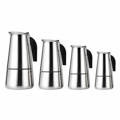 Kaffemaskine til espresso der er fremstillet af et rustfrit stålmateriale af høj kvalitet, der er sikkert og holdbart at anvende.