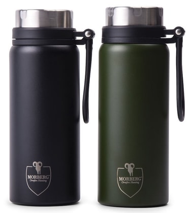 Vakuumisolerad termosmugg av rostfritt stål med dubbla väggar där innerväggen är pläterad med koppar för bästa värmehållningsförmåga.