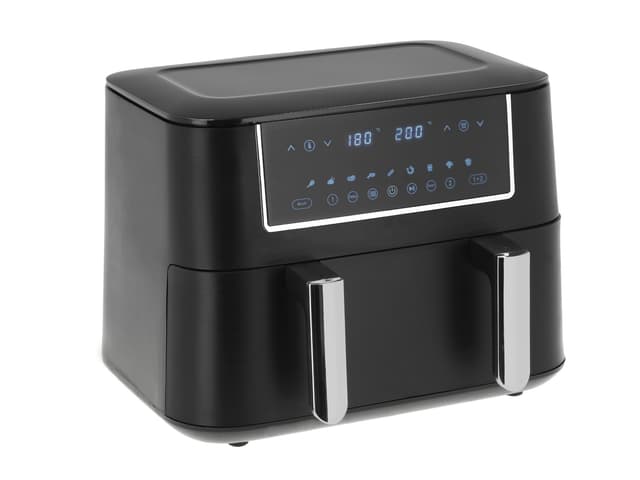 Airfryer på 9,4 liter – til lækker og sprød mad med mindre olie. Den rummelige skuffe har et praktisk skillerum, så du kan tilberede forskellige retter samtidig. Brug hele skuffen til større portioner eller del den op for at lave flere retter på én gang. Temperaturen kan justeres fra 80 til 200 °C, så du altid får den rette tilberedning, og de 9 forudindstillede programmer gør det nemt at gå i gang med madlavningen. Kort om airfryerens funktioner: • Fleksibel skuffe med skillerum • Justerbar temperatur fra 80 til 200 °C • 9 forudindstillede programmer