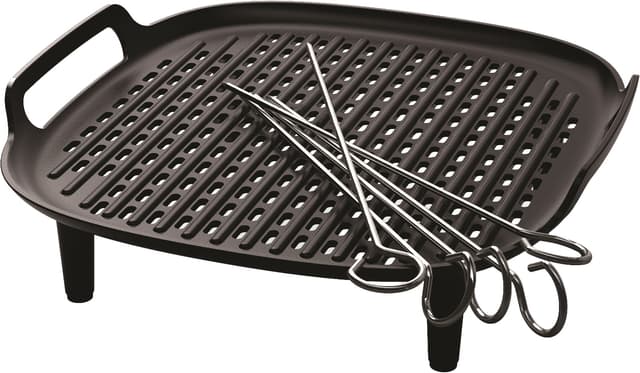 Philips airfryer grillsæt HD9946 indeholder en rillet grillplade og fem kødspyd. Det er opvaskemaskinesikkert og nemt at rengøre, og det er kompatibelt med Philips luftfrituremodellerne NA130, NA230, NA231, NA330, NA331, NA332, HD9270 og HD9280.Læs mere om produktet