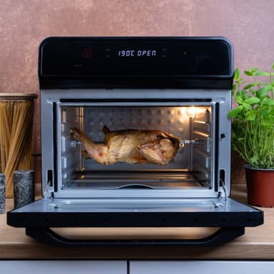 Denne 1.800 watt Sobczyk Digital airfryer ovn byder på 24 liters-kapacitet, fantastisk til familiemåltider og større forsamlinger. Det kan blive op til 230°C varm og har et brugervenligt digitalt display med 8 forudindstillede programmer.Læs mere om produktet