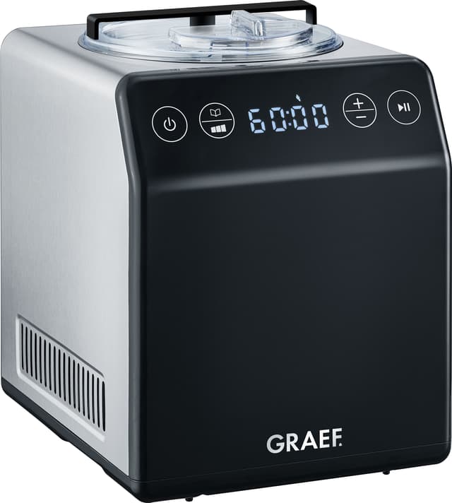 Overrask dine venner og familie med en skål hjemmelavet is eller frossen yoghurt fra Graef ismaskinen GRIM700. Enheden har 4 programmer, en yoghurtfunktion, forkølingsfunktion, efterkølingsfunktion, omrøringsfunktion og meget mere.