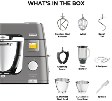 Denne Kenwood Chef XL Titanium Patissier køkkenmaskine KWL90.004SI er en multifunktionel køkkenhjælper, der har en 7 liters EasyWarm-skål, en ekstra 5-liters skål, BakeAssist touchskærm og en række SimpleTouch forudindstillede programmer.Læs mere om produktet