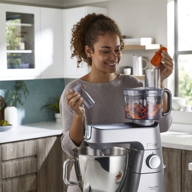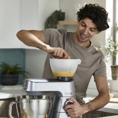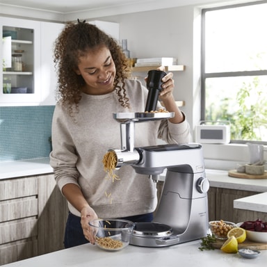 Bliv en prof i dit køkken med Kenwood Titanium Chef Baker XL køkkenmaskinen KVL85.704SI. Den har fuldt indbyggede EasyWeight-vægte, en DuoBowl på 7 l og 5 l samt en kraftfuld motor på 1.200 Watt, som gør bagningen lidt lettere.Læs mere om produktet