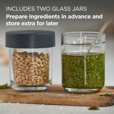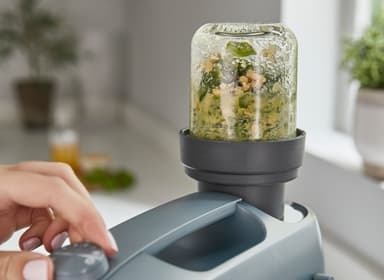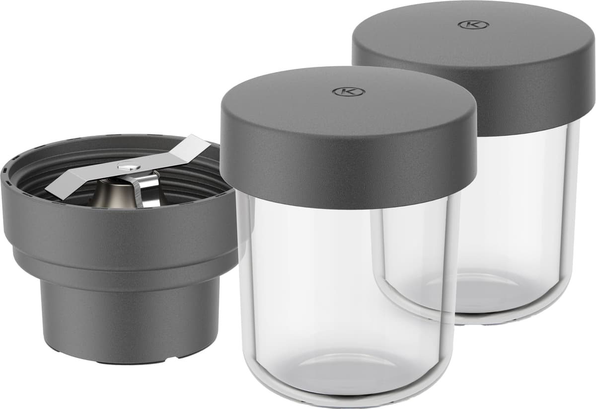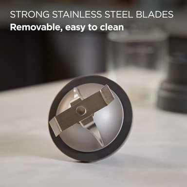 Kværn op til 100 g krydderier, kaffebønner eller nødder med fin præcision med Kenwood Go hakkeren KAG30.000GY. Den leveres med to glasbeholdere til tilberedning eller opbevaring og aftagelige knive i rustfrit stål, som er nemme at rengøre.Læs mere om produktet
