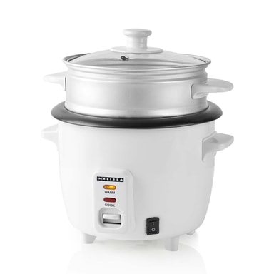 MELISSA Riskoger | 0,6 l | 300 W | non-stick belægning | aftagelig skål | dampkurv | holde-varm-funktion | automatisk slukning | hvid
