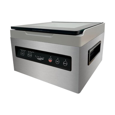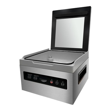 Når posen er forseglet, lukkes luften automatisk ud af kammeret og posen klasker sammen. Resultatet er en fuldstændig lufttom vakuumpakning, som kun kan opnås med en kammer vakuumpakker.