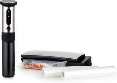 Alt, hvad du skal bruge til det perfekte sous vide-måltid - i én pakke. Sous vide-cirkulator og vakuumpakker nu samlet i én pakke!