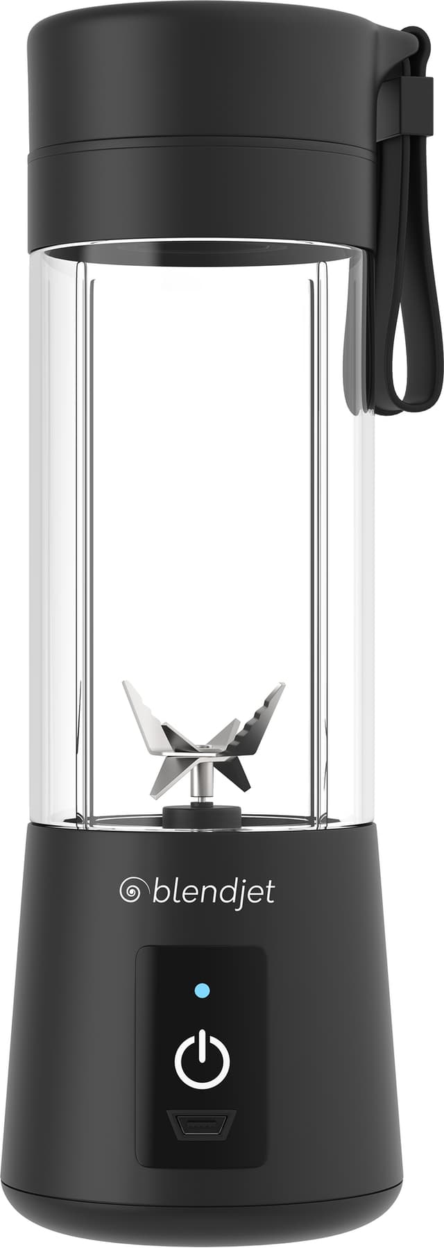 Med den bærbare BlendJet One blender kan du tage blenderen ud af køkkenet og lave friske smoothies, milkshakes eller babymad, når du er på farten. Den er kompakt men kraftfuld nok til at knuse is. Du kan blende op til 12 drikke på en enkelt opladning og derefter tilslutte den til enhver USB-port eller oplader. Blenderen har 6x robuste knivblade i rustfrit stål, 1x plastikflaske og 1x indbygget si, for at sikre, at dine drikke har en jævn tekstur.