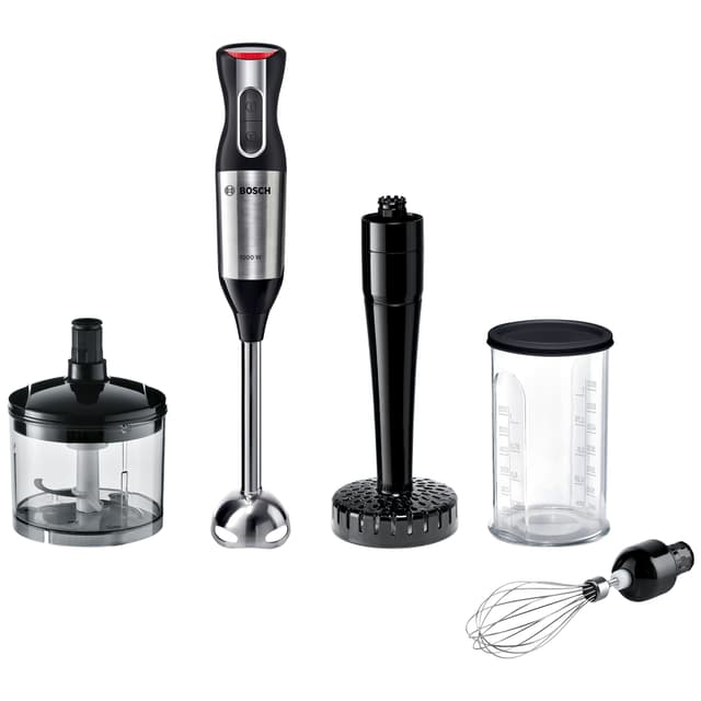 Med Bosch ErgoMixx Style håndblenderen MS6CM6155 kan du let tilberede en række forskellige måltider. Takket være den kraftige motor på 1.000 Watt kombineret med en mixerstand i rustfrit stål med 4 skæreblade kan du mixe, skære, knuse og blende al slags mad.
