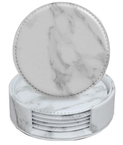 Sæt med 6 coastere, der kommer i en æske, er lavet af vandafvisende PVC læder med flotte sømme i siderne. Coasterne beskytter dit bord mod vandskader og pletter.