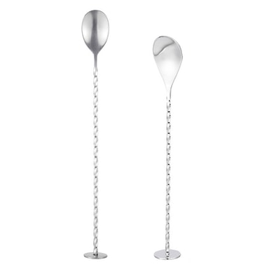 Optimale længder: Dette sæt indeholder to skeer med forskellige længder 20,5 cm & 25,5 cm, hvilket giver alsidighed til at røre cocktails i forskellige glasstørrelser og -typer.