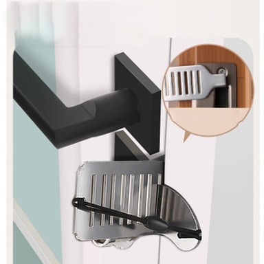 Forbedret personlig sikkerhed: Denne bærbare dørstopper giver et ekstra lag af sikkerhed og forhindrer uautoriseret adgang til dit værelse. Ideel til rejsende, der bor på hoteller, studerende i kollegier eller enhver, der bor alene, den giver ro i sindet ved at forstærke døren mod tvangsindtrængen. Dens robuste design sikrer, at selv med betydeligt eksternt pres forbliver døren sikkert låst, hvilket giver dig tid til at reagere i en nødsituation. Konstruktionen i rustfrit stål modstår korrosion og slid, hvilket sikrer langvarig pålidelighed. Denne dørstopper er en enkel, men effektiv løsning til at forbedre din personlige sikkerhed, uanset hvor du går.