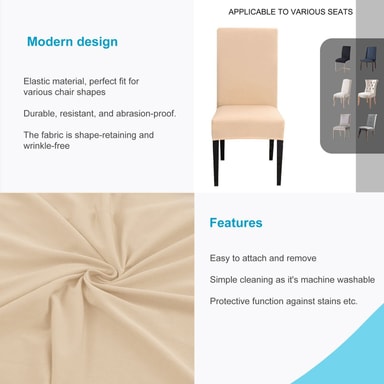 Det elastiske stolebetræk garanterer hurtig tildækning og et godt hold, samtidig med at det får selv gamle stole til at se ud som nye. Samtidig beskytter det mod støv, pletter, ridser og falmning med tiden.