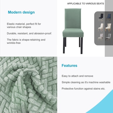 Det elastiske stolebetræk garanterer hurtig tildækning og et godt hold, samtidig med at det får selv gamle stole til at se ud som nye. Samtidig beskytter det mod støv, pletter, ridser og falmning med tiden.