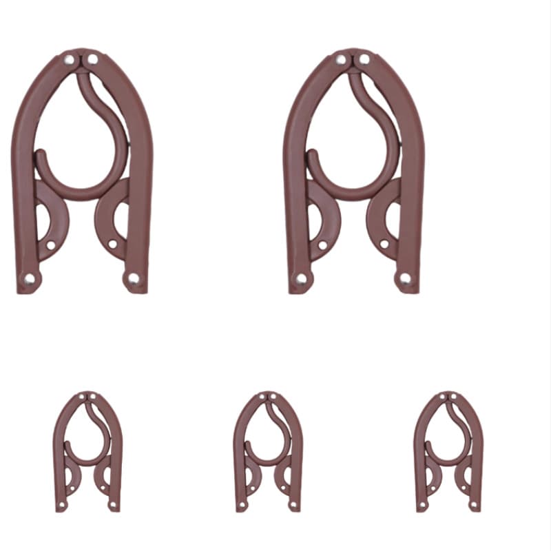Pladsbesparende design: Disse foldbare tøjbøjler er designet til at falde sammen til en kompakt størrelse, hvilket gør dem ideelle til at pakke i kufferter, rejsetasker eller endda håndtasker. De maksimerer effektivt lagerpladsen uden at gå på kompromis med funktionaliteten.