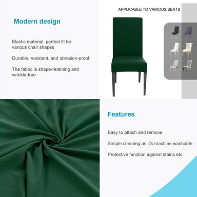 Det elastiske stolebetræk garanterer hurtig tildækning og et godt hold, samtidig med at det får selv gamle stole til at se ud som nye. Samtidig beskytter det mod støv, pletter, ridser og falmning med tiden.
