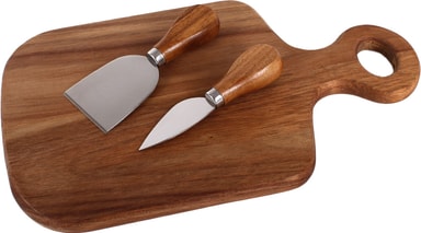 A Home ostesættet A100040 består af et robust skærebræt i akacietræ med to matchende redskaber i rustfrit stål. Perfekt til servering af ost, snacks eller som skærebræt, og leveres i en elegant gaveæske, ideel til enhver madelsker.Læs mere om produktet