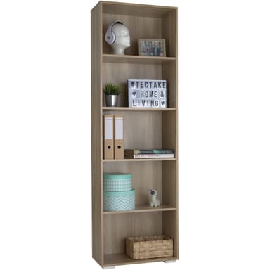 Denne smagfulde bogreol fra tectake er som opbevaringsmulighed en sand allrounder. Det praktiske højkant-format kræver kun et lille areal at stå på og skaber samtidig meget opbevaringsplads. Reolens enkelte rum har en komfortabel størrelse, der gør den ideel til tøj, tilbehør, dekorationsobjekter eller som et husets eget bibliotek.