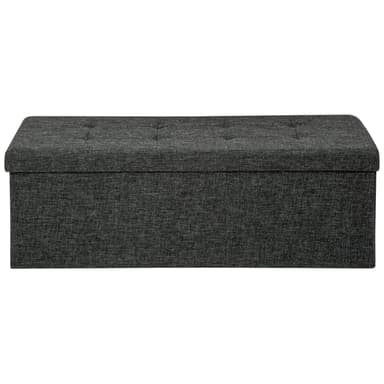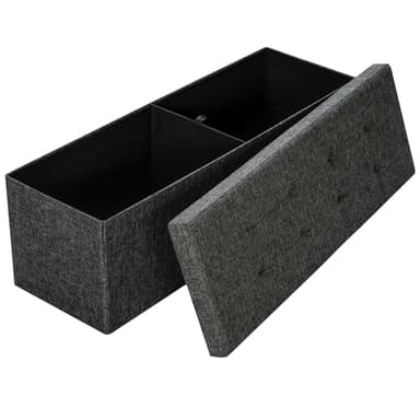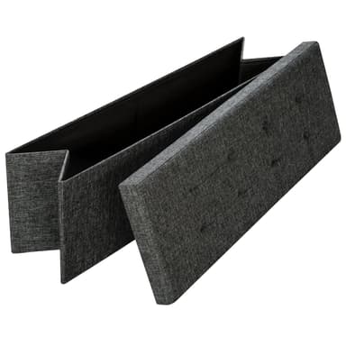 Den rektangulære foldbare skammel er ikke kun en klassisk model, men også en alsidig hvad angår funktioner. Denne skammel skaber med sit indvendige rum rigtig megen plads til dine ting. Du kan opbevare tøj, sko, sengelinned eller andre ting efter eget ønske deri. Samtidig er den komfortabelt polstrede skammel en behagelig siddemulighed og fodskammel. Opbevaringsboksen kan takket være sit moderne, men også tidløse design, kombineres individuelt med dine øvrige møbler. Kombinationen af eksklusive materialer, som den stabile ramme af MDF-fiberplader og hynden af højtæt skumstof, garanterer høj stabilitet og lang levetid. Taburetten er samlet på kort tid og kan desuden foldes og behøver derfor kun lidt plads, når den ikke er i brug. Bestil denne allrounder af en puf til dit hjem.