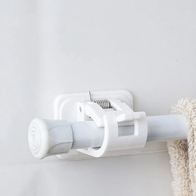 Självhäftande väggfästen för att montera gardinstång, garderobsstång eller handdukshållare. Krokarna har kraftfull vidhäftningsförmåga och bra bärförmåga. Enkel montering där du slipper borra.