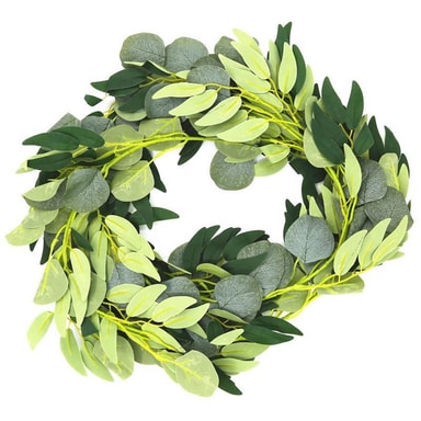 Dekorativ krans: Eucalyptus er en smuk plante, der gør sig perfekt som borddekoration, som dørkrans eller lignende. Her kunstig variant i plast, der gør guirlanden holdbar og holdbar.