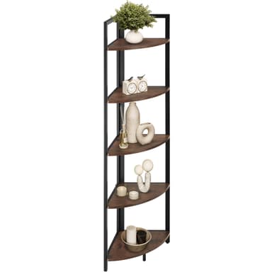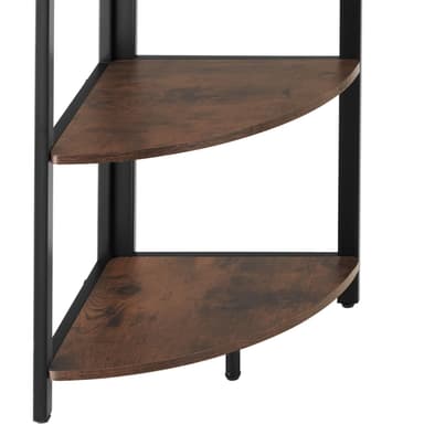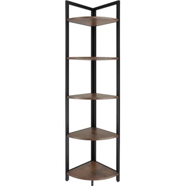 Vis dine dekorationer på den bedst mulige måde med den stilfulde Castlebar hjørnereol fra tectake i industriel stil. Denne elegante hjørnereol, der kombinerer et rustikt træ-look med en robust sort stålramme, skaber et harmonisk og moderne udtryk i dit hjem. De fem afrundede niveauer på denne hjørnereol giver masser af plads til at fremvise dine personlige genstande som bøger, billeder, planter eller souvenirs. Hjørnereolen er designet til at udnytte pladsen i hjørnerne af dit hjem, hvilket gør den både funktionel og stilfuld.