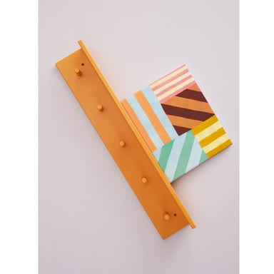 Krogene placeres, så de ender jævnt fordelt, hvis flere hylder placeres ved siden af hinanden. Farverne er perfekte til at mikse, matche og kombinere med opbevaringsserien i bomuldskanvas. Skab smart opbevaring ved at hænge forskellige farver af den cylinderformede stofopbevaring på krogene og skab orden og orden.