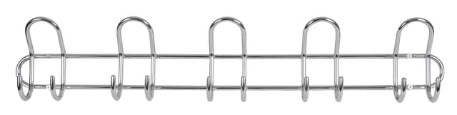Med 5 knage Farve: Krom Længde: 685 mm. Højde: 130 mm. Ø8 mm. pulverlakeret stål Inkl. farvede skruer og plugs til montering