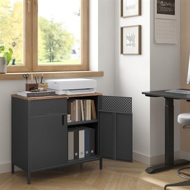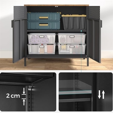 Metalskab i industriel stil med justerbar hylde - Træ/SortLæs mere om produktet
