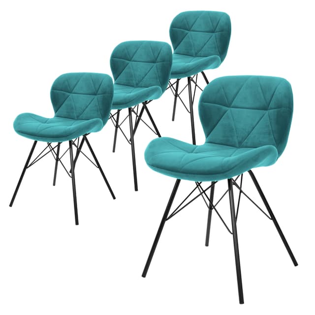 ML-Design Lot 4x Dining Chairs Petrole Modern Style, Backrest/Accoudoirs Rembourrée Aspect Velours, Pieds en Métal Noir, Chaise Ergonomique Table à manger, Fauteuil Salon/Chambre/CuisineLæs mere om produktet
