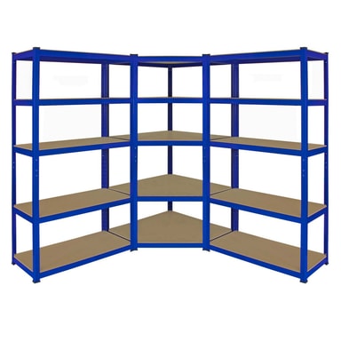 Hver hylde i hjørnereolen kan holde hele 265 kg, mens standard T-Rax-enhederne kan holde op til 280 kg pr. hylde med jævnt fordelte vægte. De blå stålhylder og de solide MDF-plader er justerbare, hvilket giver dig alsidig opbevaring til værktøj, lagerbeholdning og meget, meget mere. Ligesom alle vores garagereoler kan T-Rax hjørnereolen opdeles i to praktiske arbejdsbænke.