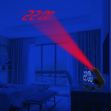 LED vækkeur: Projektoruret har snooze-funktion og er udstyret med et LED-display, hvis lysstyrke kan justeres i 6 forskellige niveauer.