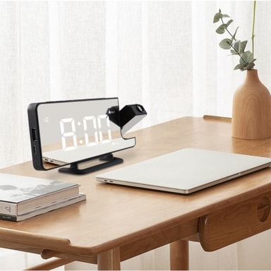 Roterbar projektor: Tiden kan f.eks. projiceres på soveværelsesloftet. Du kan indstille det, til hvor du vil have projektionen takket være 180 graders justering.