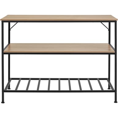 Skab mere opbevaringsplads til gryder, pander eller krydderier med den praktiske reol Akeley fra tectake i et smagfuldt fabrikslook, som er perfekt til køkkenet. To hylder og et gitterniveau giver masser af opbevaring på denne reol og overbeviser med en høj bæreevne. Denne reol er både nem og hurtig at samle. Den massive spånplade på denne reol har en beskyttende melaminbelægning og er visuelt tiltalende med sine fine årer i et trælook. Det bevidst enkle design af denne reol afspejles i den lineære stålramme, som udover dens fremragende stabilitet også giver den helt fritstående reol sine alsidige anvendelsesmuligheder og mere plads i ens skabe. Deusden er reol Akeley nem at rengøre.
