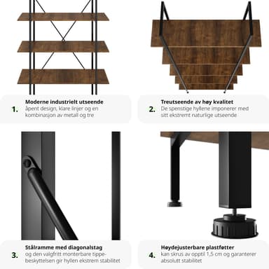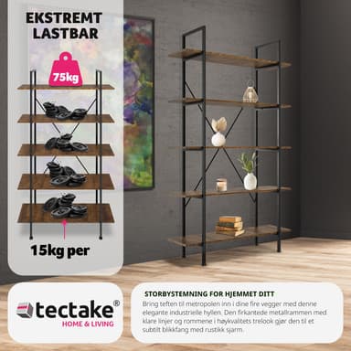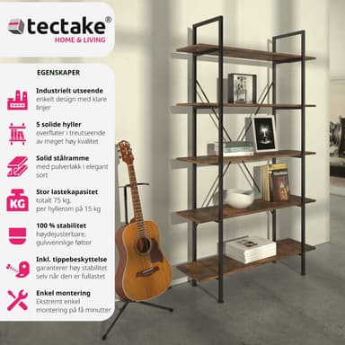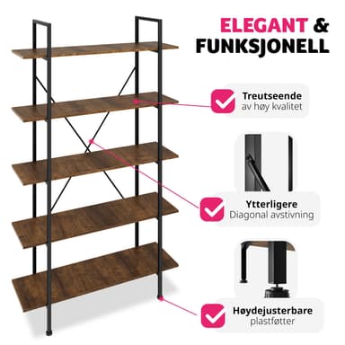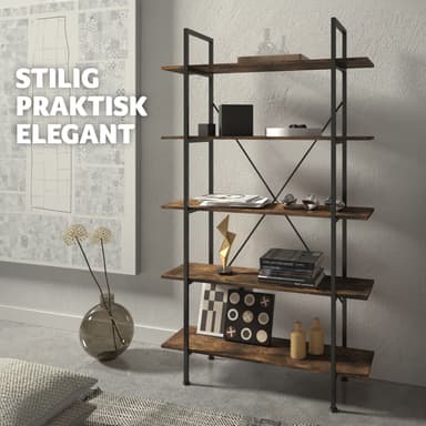 Tag den trendy industrielle stil med ind i dit hjem med den charmerende Glasgow reol fra tectake. Denne smarte reol tilbyder fem rummelige niveauer, der giver masser af plads til bøger, planter, fotos eller andre yndlingsartikler. Som en funktionel bogreol eller opbevaringsreol til kontorartikler eller nips, gør Glasgow reolen det muligt at organisere og præsentere dine ejendele på en stilfuld måde.