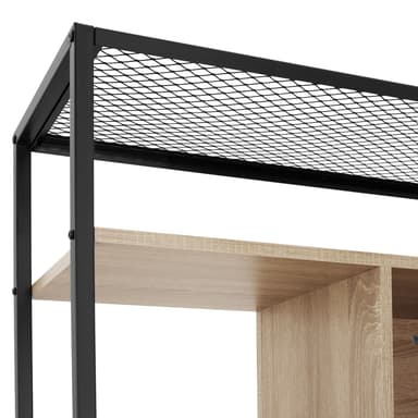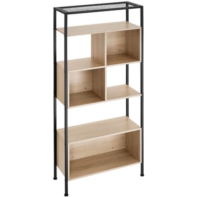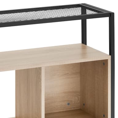 Fuldfør indretningen i dit hjem med den trendy Hastings-reol fra tectake. Denne reol kombinerer stil og funktionalitet på en måde, der gør den til et perfekt valg for enhver bolig. Det sorte stål danner en cool og moderne ramme, der fremhæver de varme trælook-elementer – en klassisk kombination, der kendetegner det populære fabrikslook.
