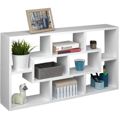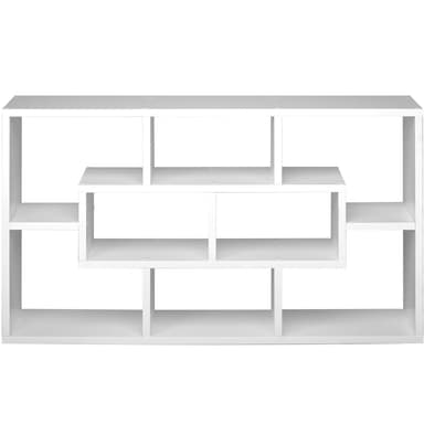 Den alsidige reol Kassandra fra tectake er rumdeler, opbevaring og blikfang i ét. Den interessante opdeling af rummene i denne reol og alternativet til vægmontering åbner adskillige interessante designmuligheder og overskuelig opbevaring. Takket være det attraktive og samtidig elegante look kan den stilfulde reol anvendes alle steder i boligen. Vægreolens konstruktion af MDF-plader med melaminbelægning er let at samle og imponerer med stor stabilitet og god bæreevne.