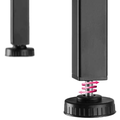 De højdejusterbare skruefødder sikrer, at reolen står sikkert på enhver overflade, og dens pladsbesparende design gør den til en praktisk løsning i både små og store rum.