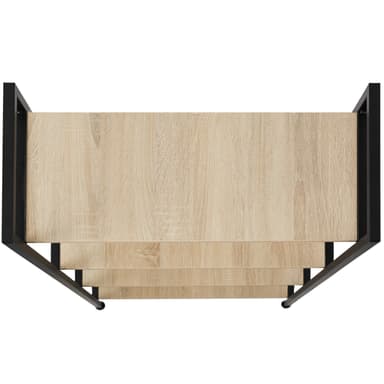 Den rustikke Leeds reol fra tectake imponerer med sit praktiske og elegante design. Denne reol kombinerer en robust stålramme med hylder i trælook og skaber en attraktiv kontrast, der tilføjer karakter og charme til enhver indretning.