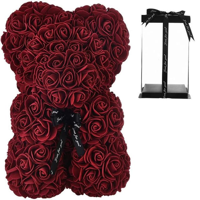 Fin håndværk: Denne rosenbjørn er lavet af kunstige, langvarige blomster. Så din rosenbjørn kan blive en smuk interiørdetalje i dit hjem.