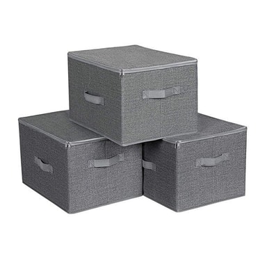 Hver skuffe måler 40 x 30 x 25 cm og kan rumme op til 3 kg. Takket være det smarte tresidede lynlåslåg er indholdet effektivt beskyttet mod støv, hvilket gør kasserne ideelle til at placere i klædeskabet, på hylder eller under sengen. De tre håndtag - et foran og to på siderne - gør dem nemme at trække ud eller flytte mellem rummene.