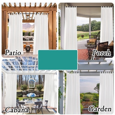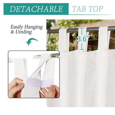 • Sæt med 2 hvide, gennemsigtige udendørs gardiner med stropper - Lysfiltrering og privatlivsbeskyttelse L