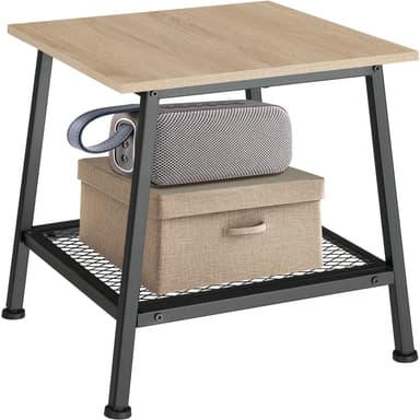 Det enkle udseende gør det lille Bedford sidebord fra tectake så velegnet som et supplement til eksisterende møbler. Overfladen i trælook suppleres af en sort stålramme med skruefødder, som giver høj stabilitet. Det lette møbel sig går ubesværet ind mod næsten enhver indretning, når det står frit i stuen eller soveoværelset. Den nederste hylde skaber ekstra opbevaringsplads på et andet niveau og understreger dette sidebords rå industrielle stil.