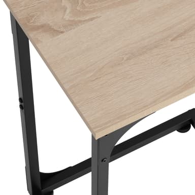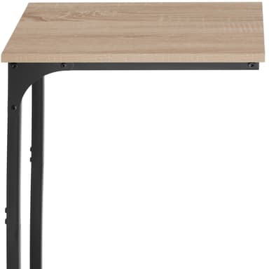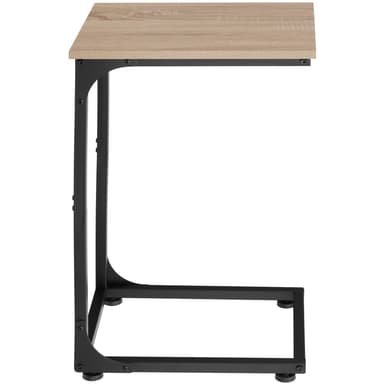 Med sit minimalistiske, men slående design, inspirerer det lille sidebord Erie fra tectake. Det attraktive design af dette sidebord er resultatet af kontrasten mellem varmt træ og køligt stål, som er typisk for factory chic. Højdepunktet ved det trendy sidebord er dets asymmetriske C-formede stel, hvilket betyder, at det nemt kan bruges til opbevaring fra en lænestol, sofa eller seng. I brug imponerer den lineære konstruktion af det flotte sidebord med god stabilitet og en beskyttende melaminbelægning på den solide bordplade - fleksibel og alsidig: det smagfulde Erie sidebord fra tectake.